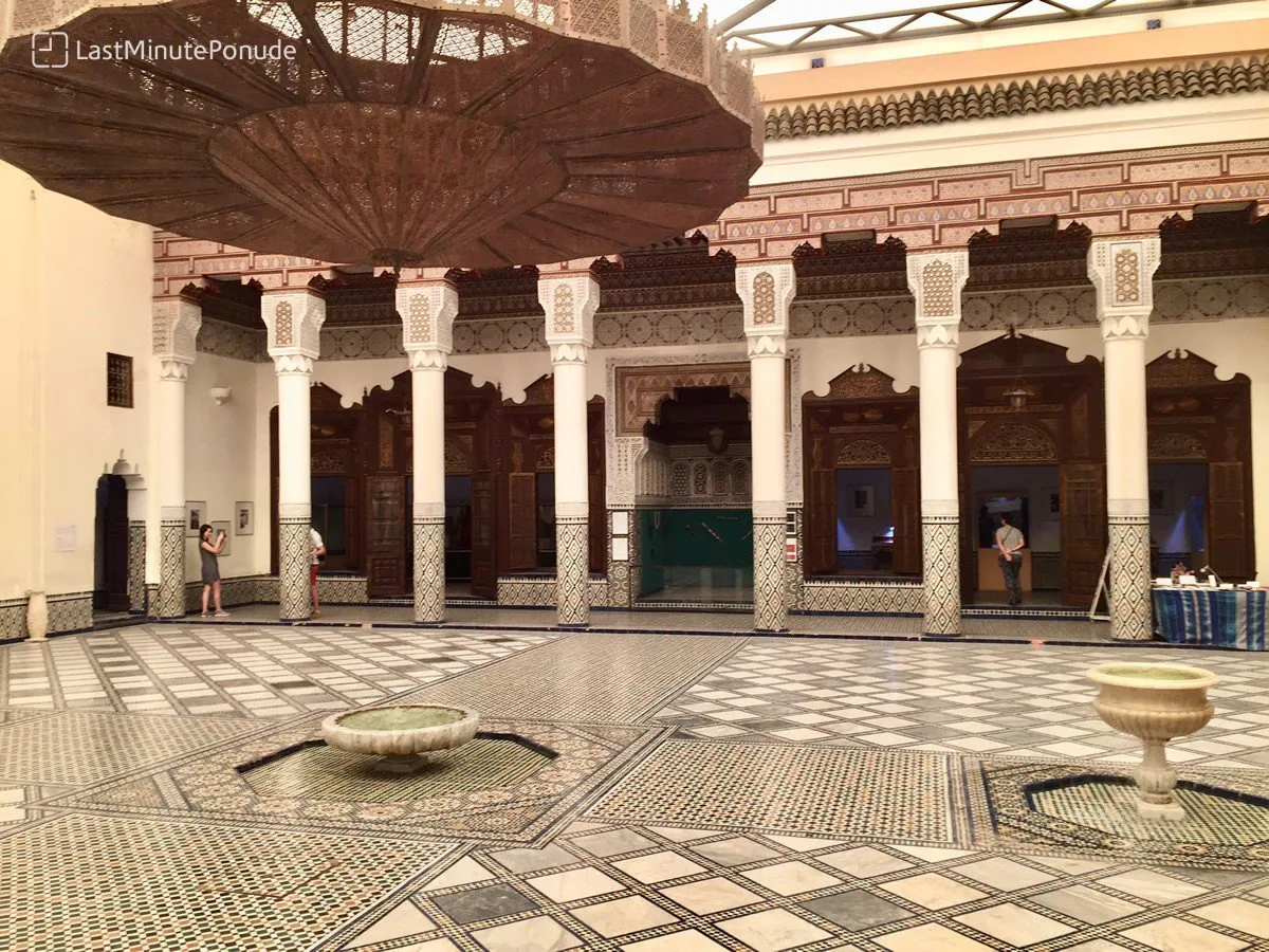 Doručak. Posle doručka poseta Fesu i njihovim drevnim tržnicama. Fes je treći po veličini grad u zemlji, glavni grad regije Fes-Bulman, duhovna i kulturna prestonica Maroka. Ime grada potiče od arapske reči za pijuk, koja se prema legendi vezuje za osnivanje grada 789. godine, čiji je osnivač iz dinastije Idrisida, Idris I. Univerzitet u Fesu, Al Karaouin, osnovan 859. godine, najstariji je još uvek aktivni univerzitet na svetu. Ovaj grad je jedan od četiri carska grada Maroka, jer je u više navrata bio prestonica, poslednji put 1912. godine. Stari grad - Medina, neprekidno naseljen od 10. veka, glavno je obeležje Fesa, a od 1981. godine nalazi se na Uneskovoj listi svetske kulturne baštine. Zaštitni znak Fesa je intenzivna plava grnčarija koja se ovde proizvodi. Celodnevno razgledanje Starog utvrđenog grada - medine Fesa, pešice, obilazak Alavitskog trga, jevrejske i arapske četvrti iz vremena dinastije Merinida, medrese Bou Inania, fontane Nezarin, andaluzijske četvrti. Tokom razgledanja, slobodno vreme za ručak (nije uračunato u cenu). Slobodno vreme za odmor, razonodu, samostalno razgledanje i kupovinu. Povratak u hotel. Večera. Noćenje u hotelu 4* u Fesu.