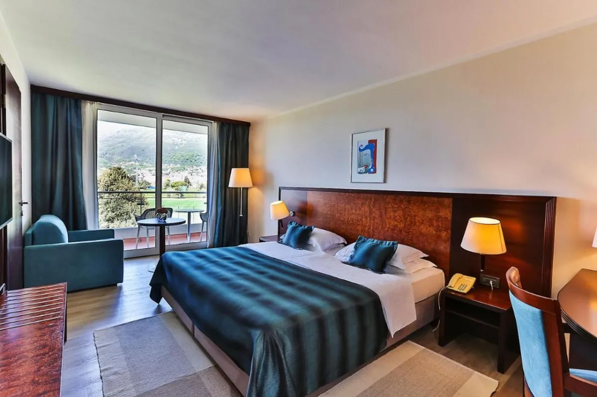 Pročitaj višeNedaleko od obale u zelenilu, hotel i plažu deli šetalište. Karakteristike: moderno opremljen hotel, raznovrsnih sadržaja, welness program. Sadržaj: restoran, restoran a la carte, tradicionalna konoba, aperitiv bar , snack bar, internet caffe , suvenirnica, prodavnica, kongresna sala, otvoreni bazen, Welness centar na 1.200 m2 sa sledećim sadržajima: zatvoreni bazen, rimska sauna, finska sauna, tursko kupatilo, ledena pećina, solarijum, masaža, hidromasaža, relaks soba, salon lepote, fitness centar. Soba: kupatilo, klima , SAT TV, mini-bar, sef, balkon, određeni broj soba ima pogled na more.