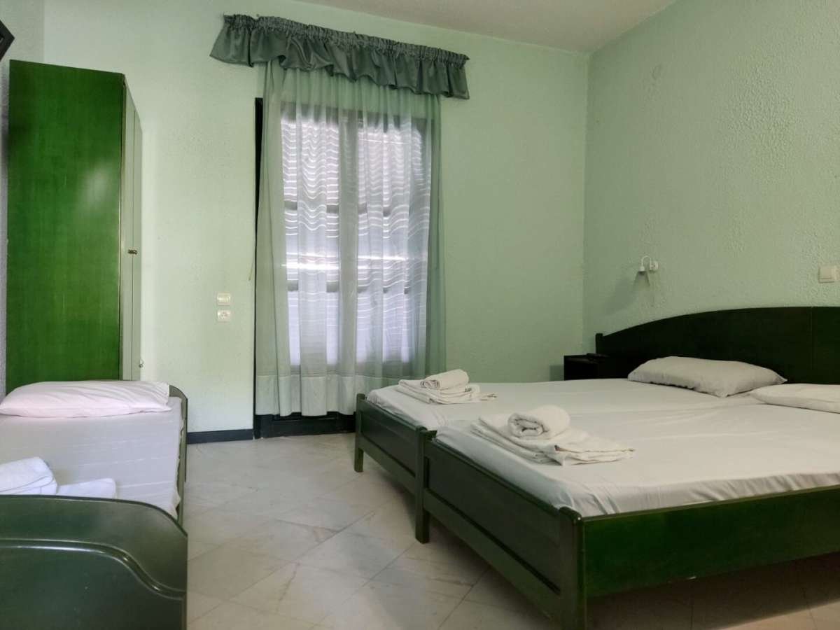 Vila Nikos se nalazi u centru Afitosa na svega 280m od plaže i nepunih 300m od vidikovca i stare vetrenjače Afitosa. Vila nudi smeštaj u dvokrevetnim i trokrevetnim studijima koji su opremljeni čajnom kuhinjom (rešo sa dve grejne ploče) sa frižiderom (jedan deo studija ima mali frižider sa friz komorom dok drugi deo studija ima barski frižider hotelskog tipa), kupatilom sa tuš kadom, klima uređajem i LCD TV-om. Sve jedinice imaju panoramski pogled na more, Sitoniju i stari deo Afitosa. Atmosfera sa balkona je divna kako u cik zore tako i uveče kada se pred vama pojavi kaleidoskop osvetljenih kamenih fasada magičnog Afitosa. Vila je smeštena je u mirnoj ulici, idealna pozicija je postavlja van gradske vreve, a ujedno na samo par minuta hoda od plaže i svih znamenitosti kojim mesto obiluje.
