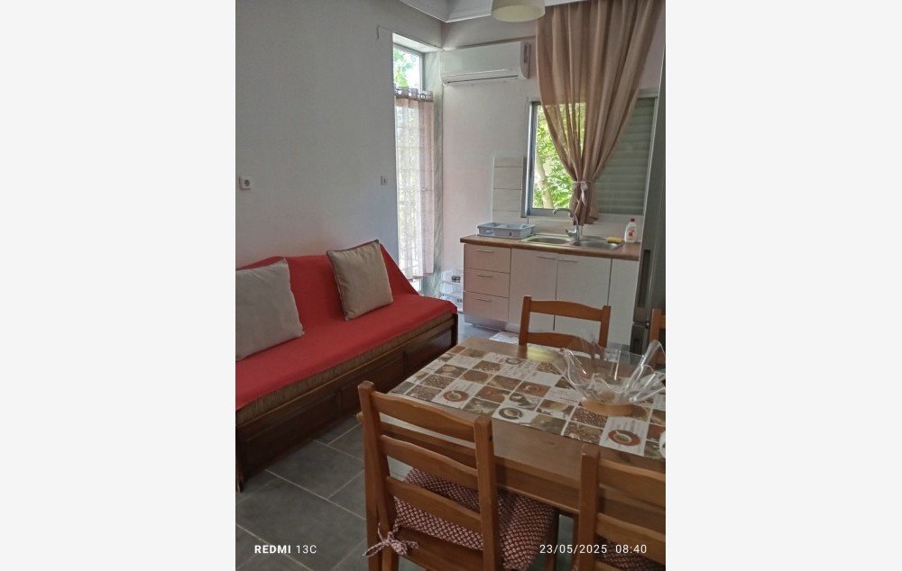 Apartmani Kostas nalaze se na udaljenosti 50m od mora i na svega 30m od glavnog trga u Dionisosu. Poseduju trokrevetne, četvorokrevetne apartmane i dupleks apartmane. Trokrevetni apartmani su sa odvojenom spavaćom sobom sa francuskim krevetom i jednim singl krevetom u kuhinji, a poseduju kupatilo i terasu koja gleda na ulicu. Nalaze se na prvom spratu. Četvorokrevetni apartman predviđen je za boravak 3-4 osobe. Poseduju kuhinju su okviru koje se nalazi jedan singl krevet, spavaću sobu sa jednim francuskim i jednim singl krevetom, kompletno opremljenu kuhinju, kupatilo i terasu koja gleda na ulicu. Smeštajne jedinice se nalaze na prvom spratu. Četvorokrevetni duplex apartman poseduju dve odvojene spavaće sobe u obe spavaće sobe se nalaze po dva singl kreveta, zasebnu kuhinju, kupatilo i terasu. Nalaze se na prvom spratu. Svi apartmani opremljeni su veš mašinama. Upotreba klima uređaja i Wifi interneta je uračunata u cenu. Ne poseduje peškire. Posteljina se ne menja tokom boravka.
