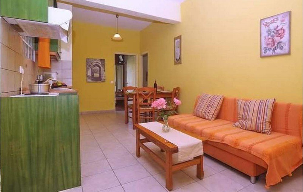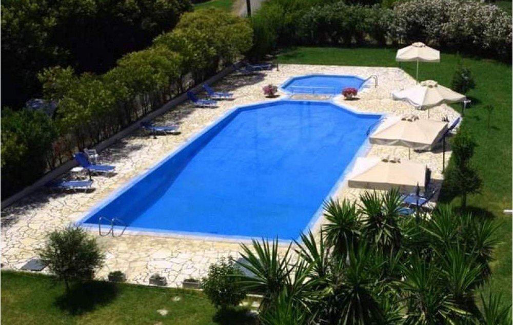 Nalazi se u samom centru Dasije, udaljena je oko 100 m od glavne ulice, odmah prekoputa hotela Ikos (nekadašnjeg Chandris hotela). Od plaže je udaljena oko 500 m. Ova lepo uređena i održavana apartmanska kuća sa velikim, uređenim dvorištem punim zelenila poseduje veliki bazen sa ležaljkama i suncobranima koji su gostima besplatno na raspolaganju. U blizini same vile su brojni kafe barovi, restorani, marketi, ambulanta i autobuska stanica. Vila u svom sastavu poseduje četvorokrevetne apartmane, kao i četvorokrevetne duplekse sa pomoćnim ležajevima raspoređene u prizemlju, na prvom i drugom spratu. Sve smeštajne jedinice opremljene su čajnom kuhinjom (štednjak sa dve ringle), frižiderom, kupatilo sa tuš kadicom, TV-om i klima uređajem (klima se doplaćuje 5 € po danu na licu mesta). U vili je dostupan WiFi, ali agencija ne garantuje za kvalitet signala i postojanost rada.