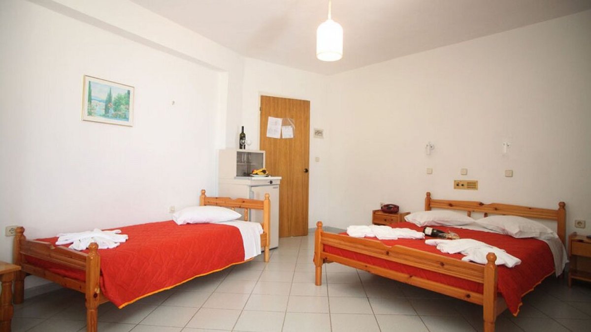 Smešten je u centru mesta Agios Nikitas na zapadnoj obali Lefkade, na 12km od grada Lefkada i 30km od aerodroma u Prevezi. Sadržaj: Recepcija, parking , restoran, Wi-Fi u zajedničkim prostorijama. Plaža: Udaljena oko 150m od peščano šljunkovite plaže. Usluga: Samo najam ili noćenje sa doručkom na bazi švedskog stola - samoposluživanje, izbor više jela. Smeštaj: Hotel ima 15 standardnih soba, 12 studia, 4 apartmana. Svaka smeštajna jedinica sadrži terasu, mogućnost dodavanja kreveca, telefon, frižider, TV, klima. Standardna soba: oko 20m2, bračni krevet ili dva singla + pomoćni ležaj. Studio: oko 20m2, kuhinjica, dva singl ili bračni ležaj + pomoćni ležaj. Apartman: oko 30m2, odvojena spavaća soba sa bračnim krevetom ili dva singla, dnevna soba sa dva singl kreveta ili sofama u sklopu sa trpezarijom i kuhinjom.