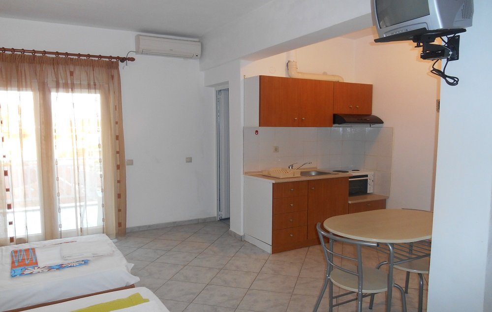 Vila se nalazi u centru, na 120m udaljenosti od plaže. Studija sadrže čajnu kuhinja sa posuđem i priborom, klima uređaj, kupatilo sa toaletom, LCD TV, peškire, terasu i WI-FI internet. Korišćenje klima uređaja uključeno u cenu. Posteljina - menja se na 5 dana (ista se ostavljaju na spratu vile i gosti ih sami menjaju). WI-FI: internet u vilama nije namenjen profesionalnoj upotrebi, a jačina signala, brzina i kvalitet protoka i povezivanja kao i stabilnost mreže zavise isključivo od provajdera, tehničkih mogućnosti u samom letovalištu i regiji i drugih faktora. Vila ne poseduje parking. Postoji mogućnost da internet signal bude dostupan od 01.06.2026.