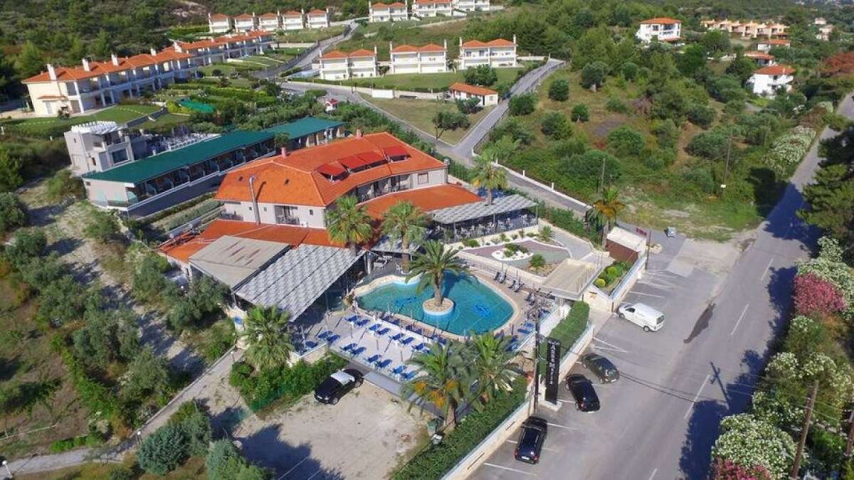 Smešten na ulazu u Pefkohori, hotel omogućava lak pristup selu, kao i plaži koja je udaljena oko 200 metara. Nalazi se na Kasandri, na samom početku mesta Pefkohori, oko 500 metara od centra i oko 200 metara od plaže. Sadržaj: Recepcija, restoran, bazen, bar pored bazena, TV sala, Wi-Fi i parking. Nalazi se na oko 200m od plaže, ležaljke i suncobrani uz doplatu. Usluga: Polupansion – švedski sto (samoposluživanje). Smeštaj: Nedavno renovirane, opremljene modernim nameštajem, imaju kupatilo, klima-uređaj, mali frižider, krevetac, terasu, telefon i TV.