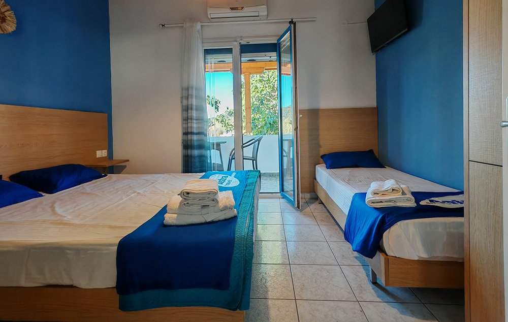Nalazi se na 50m od prostrane Sykia plaže. U ponudi su studiji za do 4 osobe i apartmani za do 5 osoba koji se nalaze u visokom prizemlju. Sve smeštajne jedinice imaju SAT TV, WIFI i klima uređaj čije je korišćenje uključeno u cenu. Gostima je na raspolaganju parking. Najbliži market za nabavku osnovnih potrepština se nalazi na nekih 400m od kuće. Za veće snabdevanje najbliža je Sykia na 4km ili Sarti na 11km od kuće.