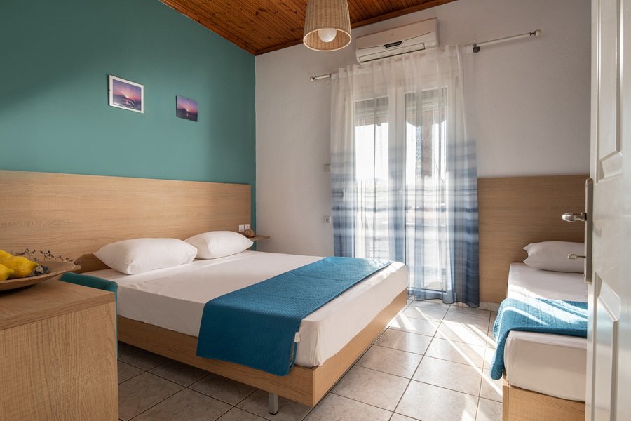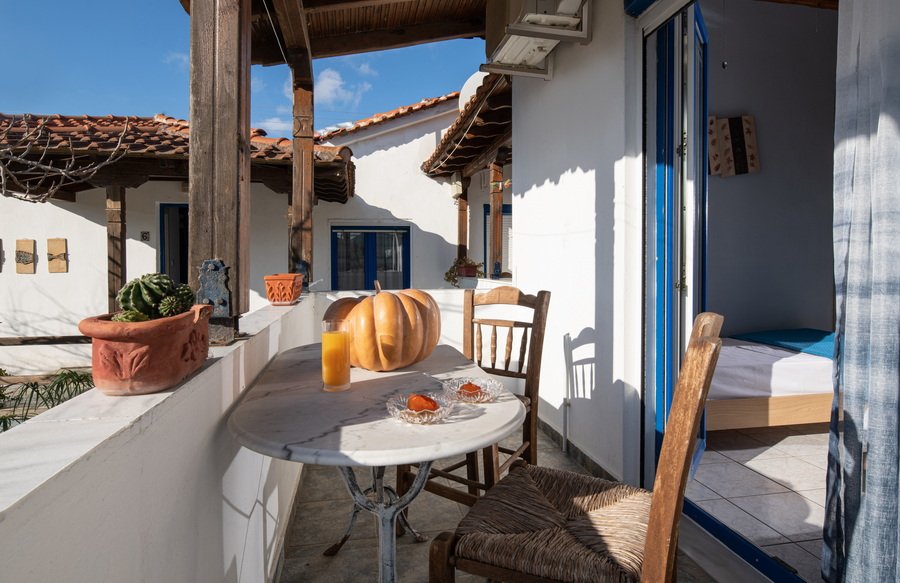 Nalazi se na 50m od prostrane Sykia plaže. U ponudi su studiji za do 4 osobe i apartmani za do 5 osoba koji se nalaze u visokom prizemlju. Kuća ima SAT TV, WIFI i klima uređaje čije je korišćenje uključeno u cenu. Gostima je na raspolaganju parking. Najbliži market za nabavku osnovnih potrepština se nalazi na nekih 400m od kuće. Za veće snabdevanje najbliža je Sykia na 4km ili Sarti na 11km od kuće.