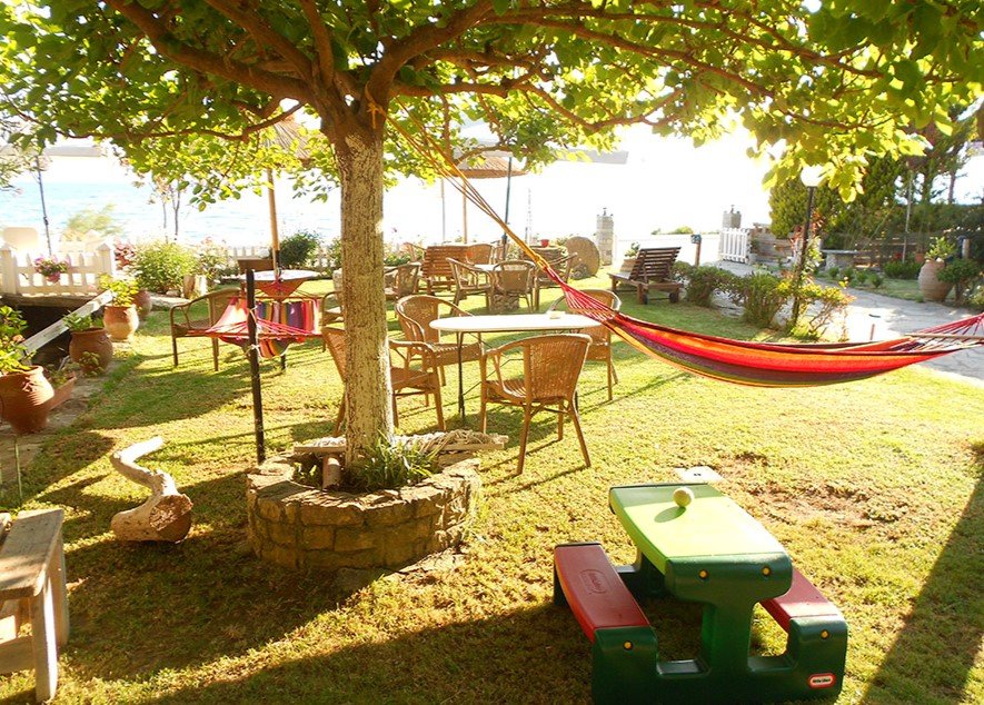 Ovaj lep mali hotel apartmanskog tipa, nalazi se na sredini prelepe Vrahos plaže, na samoj plaži, od koje je deli samo šetalište uz more. Flevas Mill, sa svojom odličnom pozicijom, lepim studijima i apartmanima, vrtom, igralištem za decu, velikim tremom za sedenje, zidanim roštiljem, barom sa stolovima u vrtu, predstavlja pravi razlog za boravak porodica, ali i parova željnih prirode i mira u ovom delu Grčke. Suncobrani i ležaljke na plaži su na raspolaganju gostima uz doplatu ili jedno piće po osobi. Lepi, prostrani, dobro opremljeni studiji i apartman se nalaze na prizemlju ili malo izdignutom prizemlju i imaju pogled na vrt i bočno na more.