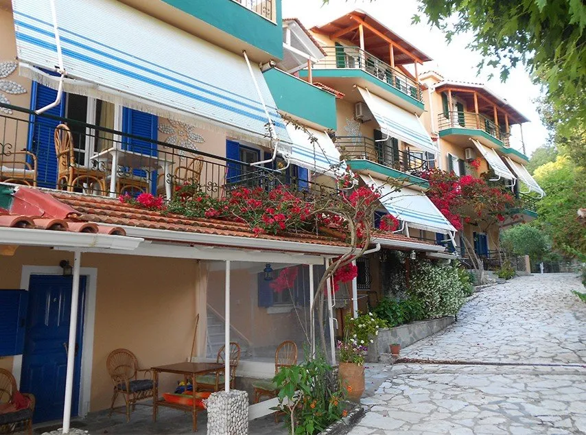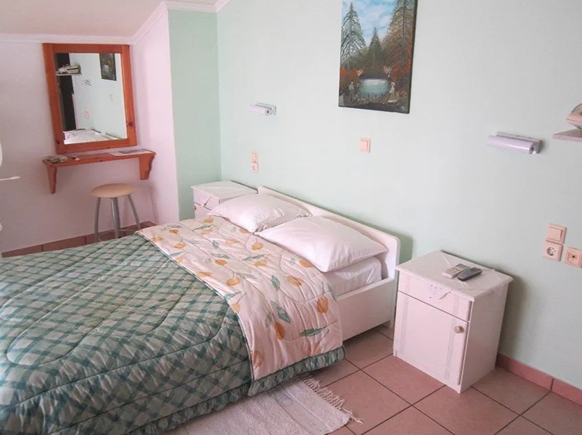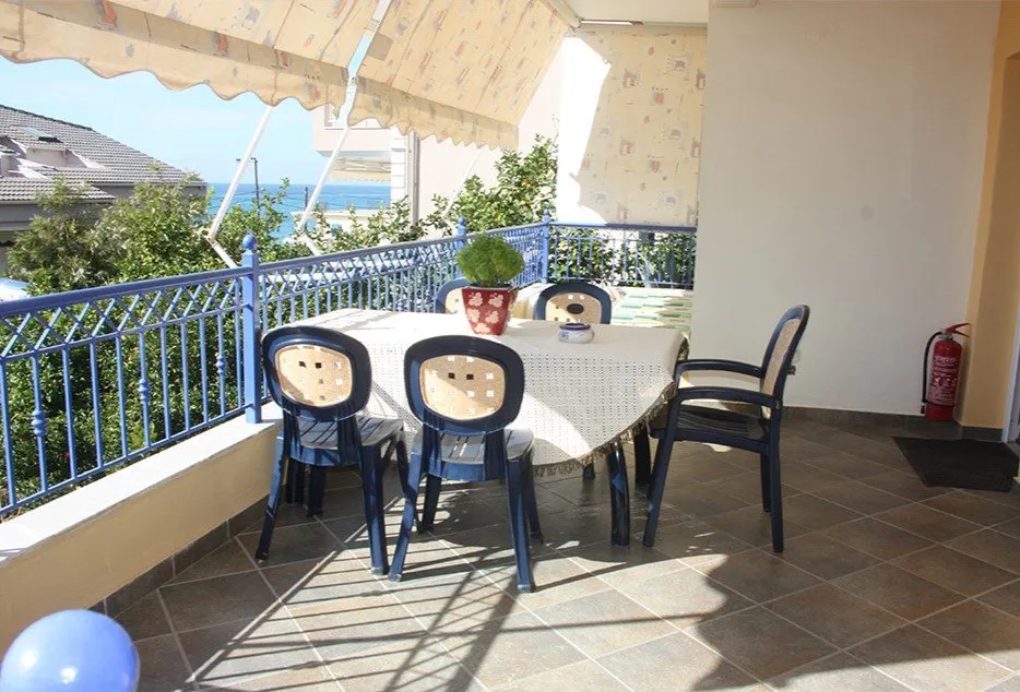 Ovaj lep mali hotel apartmanskog tipa, nalazi se na sredini prelepe Vrahos plaže, na samoj plaži, od koje je deli samo šetalište uz more. Flevas Mill, sa svojom odličnom pozicijom, lepim studijima i apartmanima, vrtom, igralištem za decu, velikim tremom za sedenje, zidanim roštiljem, barom sa stolovima u vrtu, predstavlja pravi razlog za boravak porodica, ali i parova željnih prirode i mira u ovom delu Grčke. Suncobrani i ležaljke na plaži su na raspolaganju gostima uz doplatu ili jedno piće po osobi. Lepi, prostrani, dobro opremljeni studiji i apartman se nalaze na prizemlju ili malo izdignutom prizemlju i imaju pogled na vrt i bočno na more.