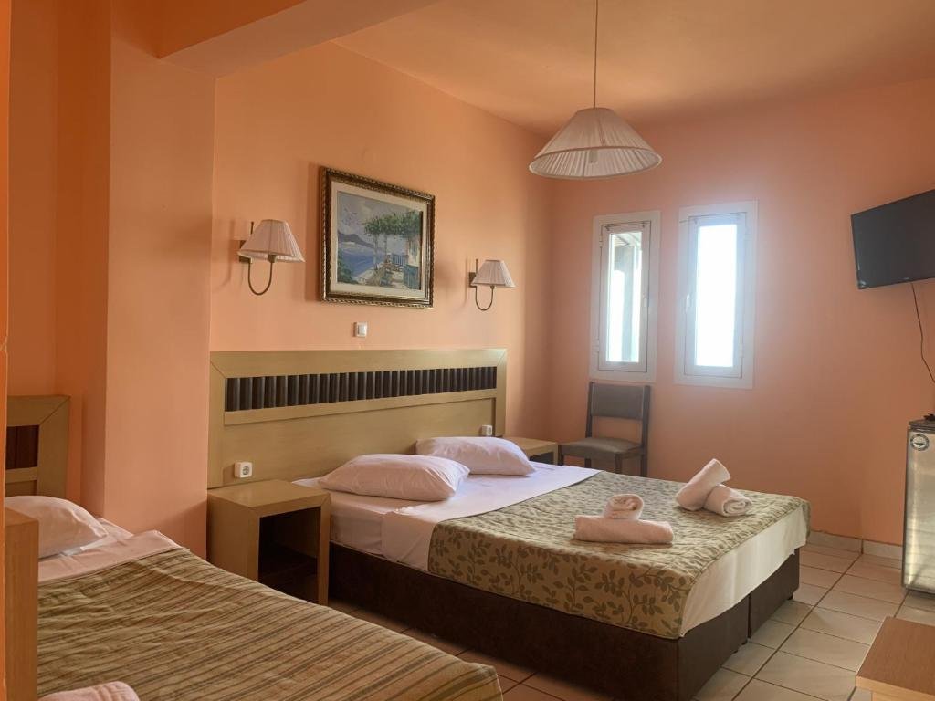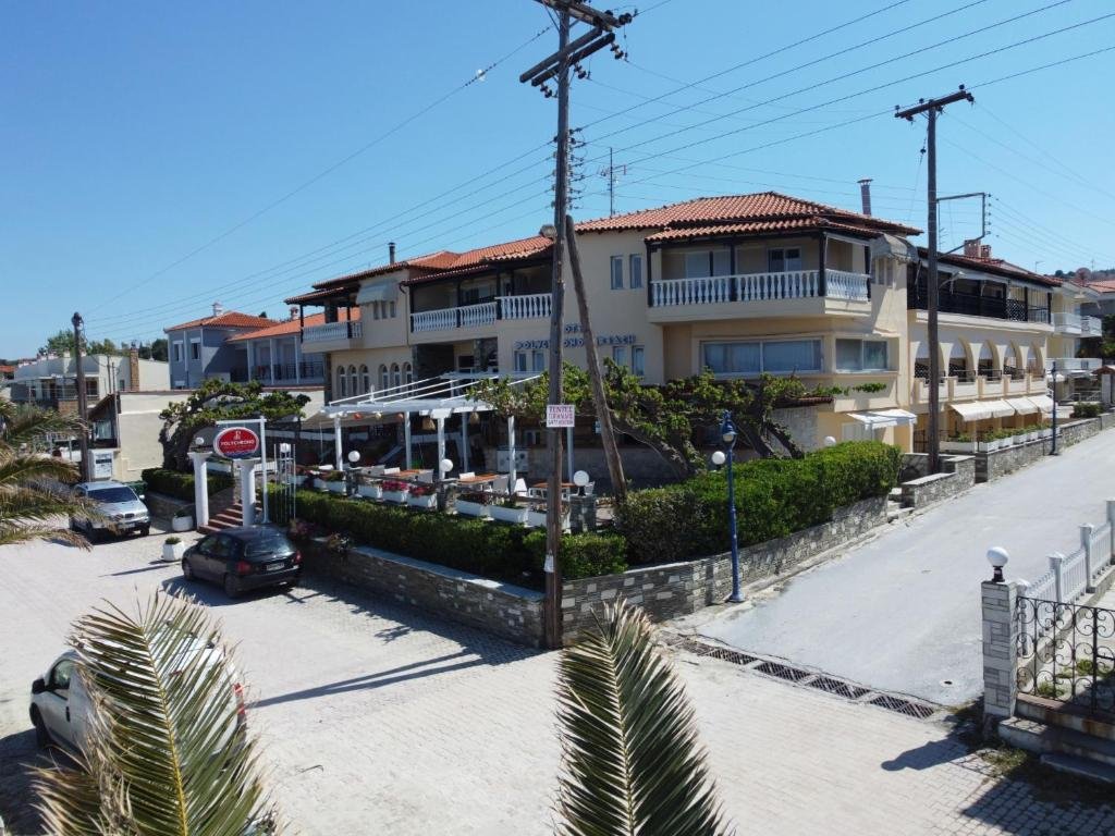 Hotel se nalazi u prvom redu do mora, na samom šetalištu. Odiše prijatnom porodičnom atmosferom, a nudi sobe za dve ili tri osobe, smeštene na prvom I drugom spratu, od kojih većina ima bočni pogled na more. Svaka soba sadrži mini frižider, TV, kupatilo/wc, prostrane terase, A/C (uz doplatu na licu mesta od 7€ dnevno), a WiFi je dostupan na recepciji hotela. Nedaleko od vile nalaze se market, suvenirnica, veliki broj restorana, beach barova, kafića i butika.