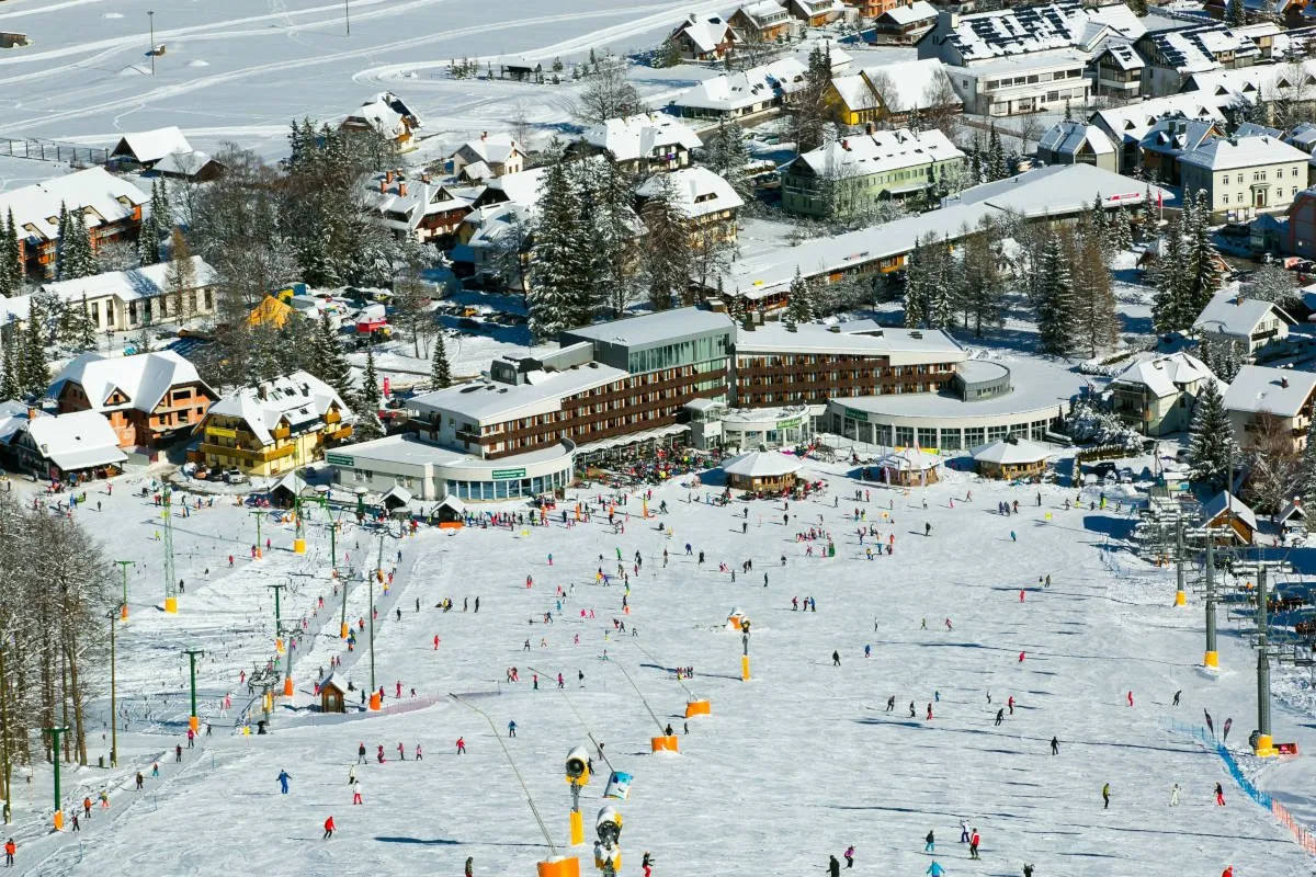 Hotel Kompas je najveći hotel na Kranjskoj Gori smešten na idealnoj lokaciji, oko 150m od centra i ski staze. Sadržaj: Recepcija, lift, restoran, bar, wi-fi (besplatan), parking besplatan (ograničen broj mesta), bazen, wellness, fitness itd. Sve sobe imaju kupatilo sa kadom ili tuš kabinom, fen, sef, tv, telefon, wi-fi. Većina soba nema balkon. Dečiji krevetac na upit, doplata 12 € dnevno.