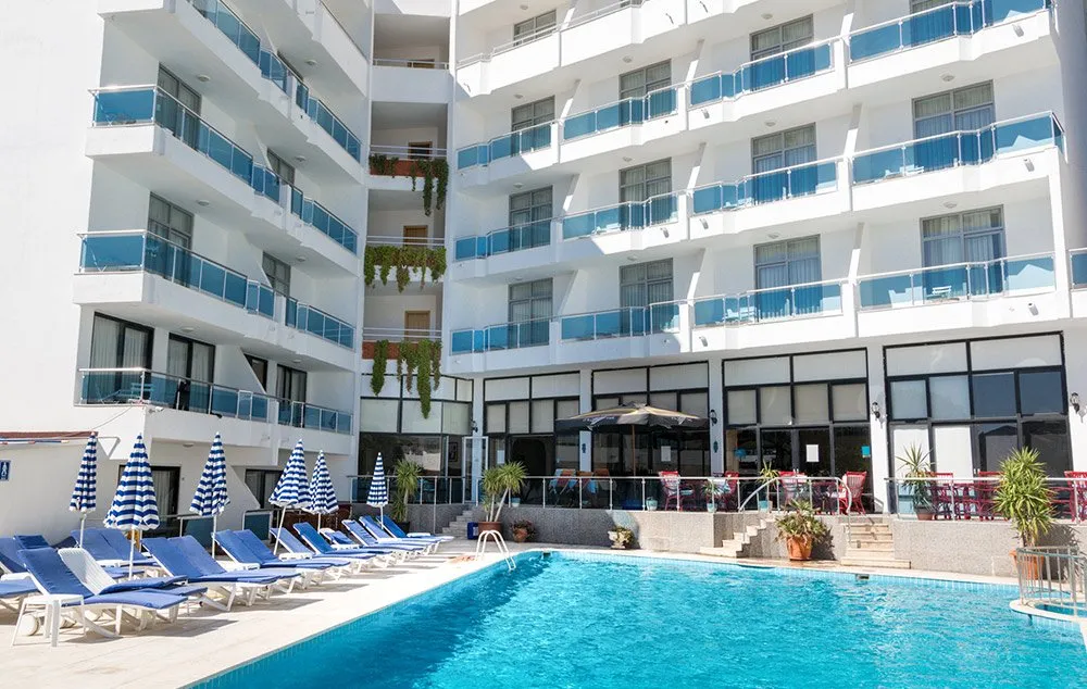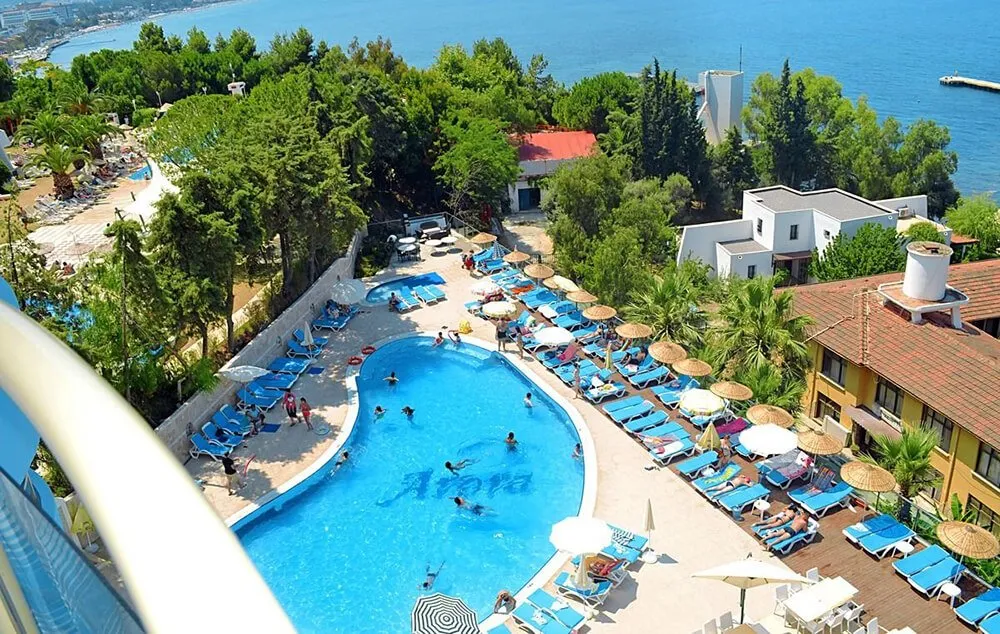 Položaj: hotel se nalazi na plaži, na 6km od centra Kušadasija, 115km od aerodroma u Bodrumu. Kompletno je renoviran 2012. godine.Plaža: privatna, peščana plaža, duga oko 50-60m. Ležaljke i suncobrani besplatni za goste hotela. Udaljen je na 250m od čuvene plaže Long beach. Hotelski sadržaj: recepcija, lobi, glavni restoran, barovi, 1 otvoreni bazen i 1 zatvoreni bazen, 1 dečiji bazen sa toboganom, tursko kupatilo, sauna i masaža (uz doplatu), stoni tenis, fitnes centar, sef na recepciji, dnevna i večernja animacija, wifi u holu. Sobe: raspolaže sa 137 soba. Standardne sobe imaju oko 20m2-24m2 i poseduju kupatilo (tuš, WC, fen za sušenje kose), klima uređaj, SAT TV, telefon (uz doplatu), mini bar, sef (uz doplatu),balkon.